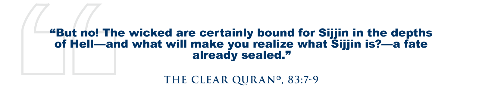 Allah (SWT) says in The Quran, “But no! The wicked are certainly bound for Sijjin in the depths of Hell—and what will make you realize what Sijjin is?—a fate already sealed.” (The Clear Quran®, 83:7-9) Then, Allah (SWT) further goes on to describe, “Moreover, they will surely burn in Hell, and then be told, ‘This is what you used to deny.’ But no! The virtuous are certainly bound for ‘Illiyun in elevated Gardens—and what will make you realize what ‘Illiyun is?—a fate already sealed, witnessed by those nearest to Allah.” (The Clear Quran®, 83:19)