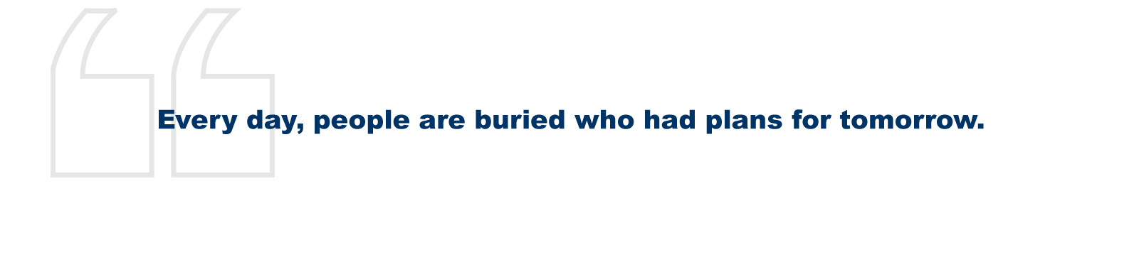 The grave may seem far away but, in truth, it may be closer than we think. Every day, people are buried who had plans for tomorrow.