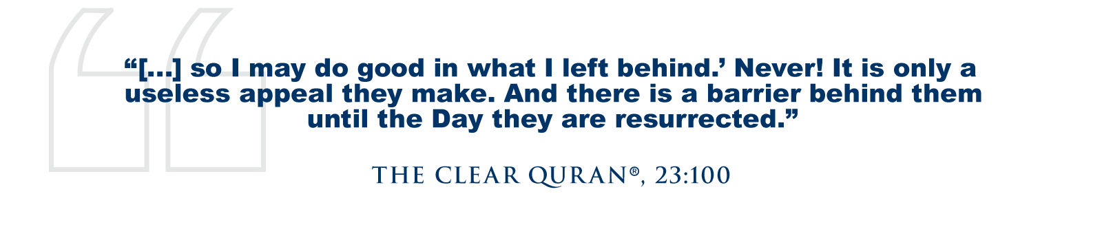 This continues until the Trumpet is blown, and the souls are resurrected for the Day of Judgment. This period in the grave is known as al-barzakh, a life between death and the Hereafter. Allah (SWT) says, “[…] so I may do good in what I left behind.’ Never! It is only a useless appeal they make. And there is a barrier behind them until the Day they are resurrected.” (The Clear Quran®, 23:100)