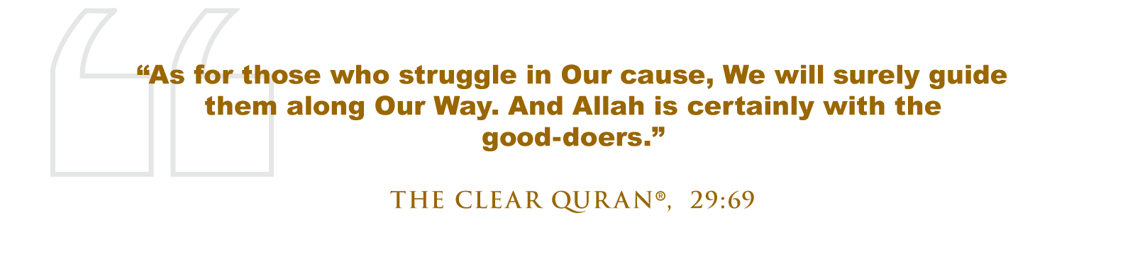 Allah (SWT) says, “As for those who struggle in Our cause, We will surely guide them along Our Way. And Allah is certainly with the good-doers.” (The Clear Quran®, 29:69)
