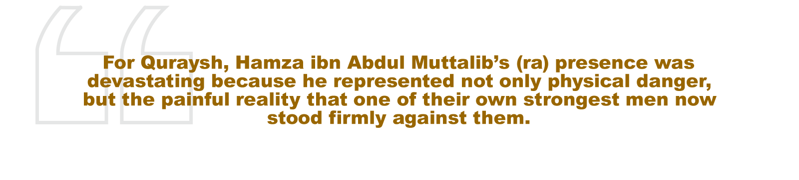 When Umar ibn al-Khattab (ra) later embraced Islam, this transformation became even more visible. Ibn Mas’ud famously recalled that after Umar ibn al-Khattab (ra) accepted Islam, Muslims were able to pray openly near the Ka’bah in ways they had not before. Yet Hamza ibn Abdul Muttalib’s (ra) earlier conversion had already begun preparing that shift, weakening Quraysh’s confidence that intimidation alone could contain revelation.