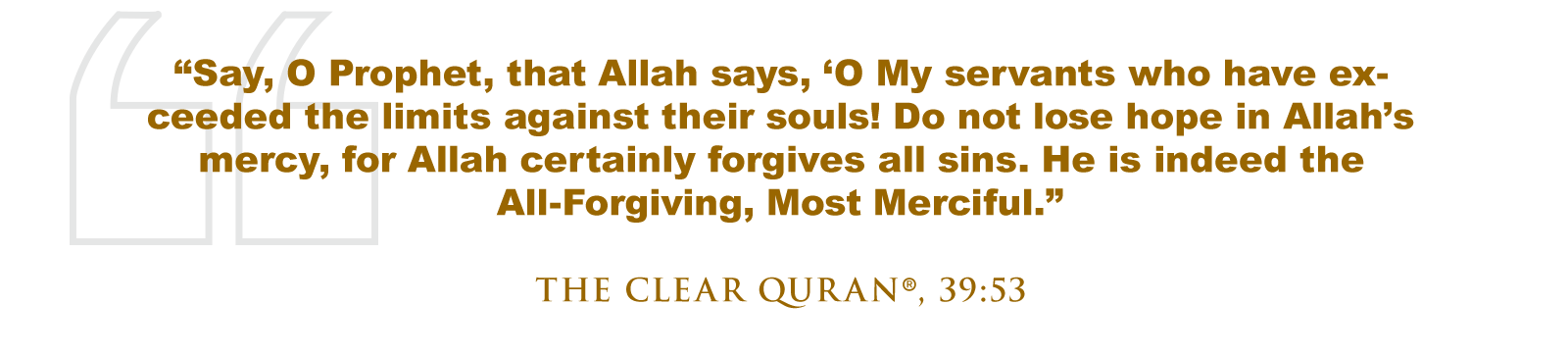 Remember that Allah (SWT) says, “Say, O Prophet, that Allah says, ‘O My servants who have exceeded the limits against their souls! Do not lose hope in Allah’s mercy, for Allah certainly forgives all sins. He is indeed the All-Forgiving, Most Merciful.” (The Clear Quran®, 39:53)