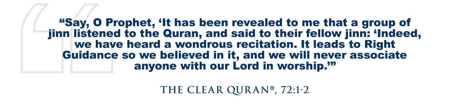 Though the Prophet Muhammad (SAW) was sent as a messenger to humans, the message of Islam reached the jinn as well. In fact, The Quran tells us of a moment when a group of jinn heard the Prophet (SAW) reciting The Quran and were so moved by it that they accepted Islam immediately. Allah (SWT) revealed, “Say, O Prophet, ‘It has been revealed to me that a group of jinn listened to the Quran, and said to their fellow jinn: ‘Indeed, we have heard a wondrous recitation. It leads to Right Guidance so we believed in it, and we will never associate anyone with our Lord in worship.’” (The Clear Quran®, 72:1-2)