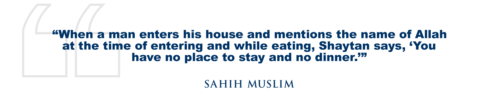 He (SAW) said, “When a man enters his house and mentions the name of Allah at the time of entering and while eating, Shaytan says, ‘You have no place to stay and no dinner.’” (Sahih Muslim)